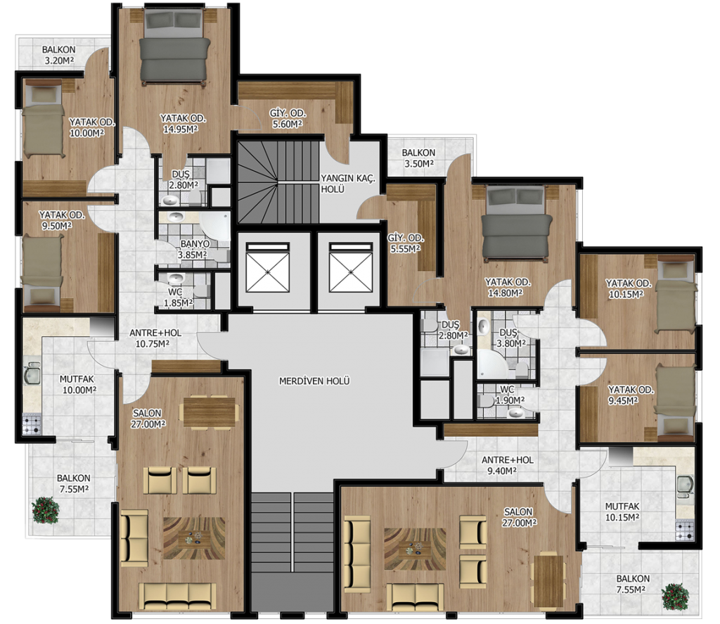 - Apartman Girişi ve Tüm Merdivenler Granit Mermer