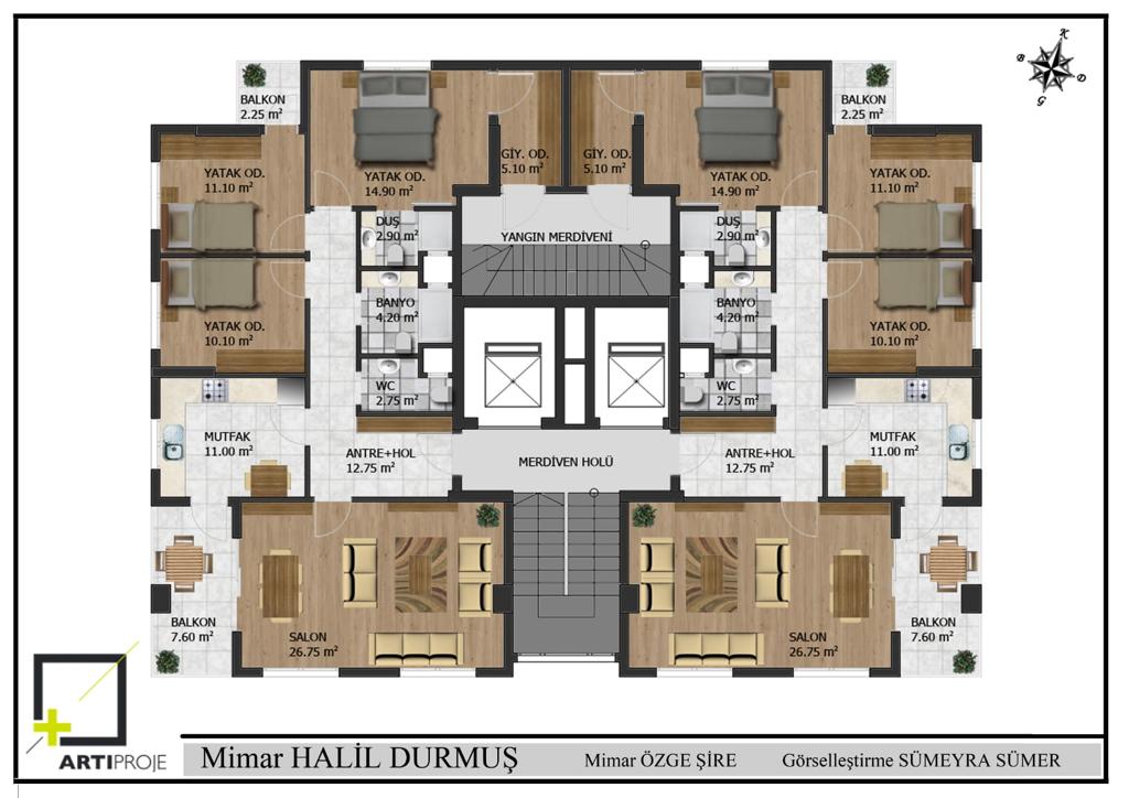 - Zemin +Asma Kat +8 Katlı 1 Blok